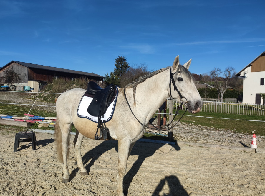 J'espère que mon message ne sera pas inapproprié, mais j'ai un bridon avec frontal + muserolle pull back en cuir noir, inserts + liserés galuchat bleu de chez Perez Sellerie