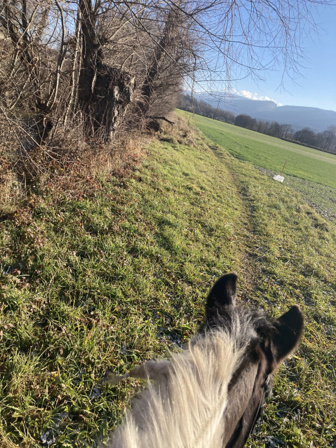 Et retour tout calme renes longues. Pas essayer de brouter ni de forcer l’allure comme elle fait si bien avec mes filles