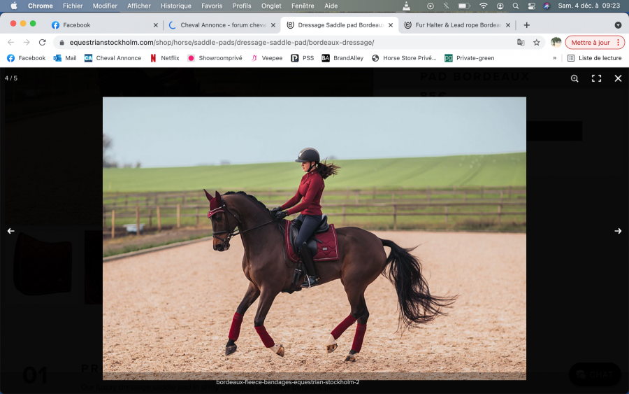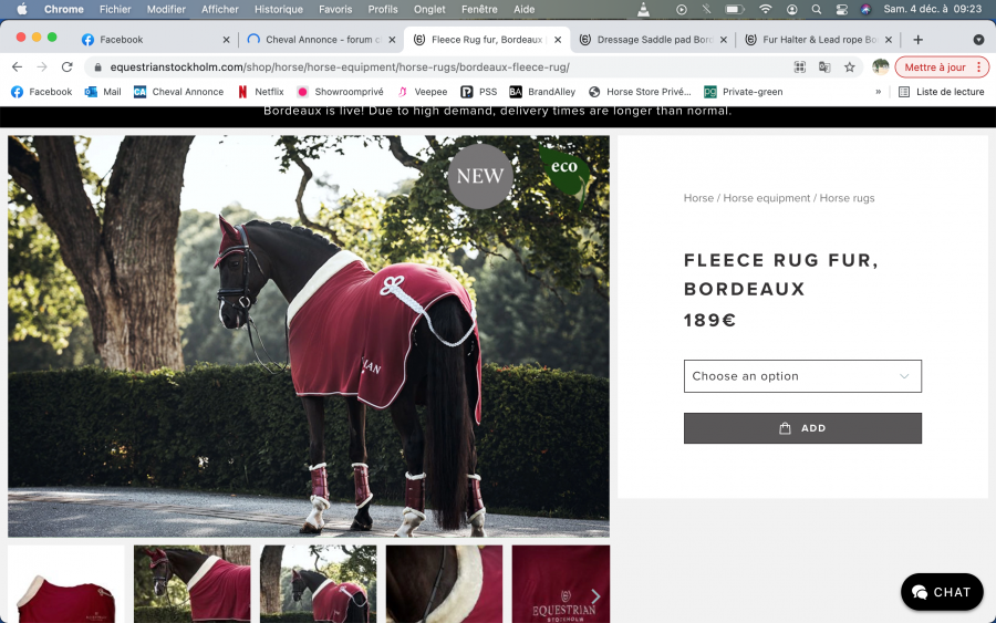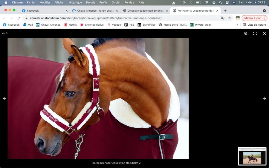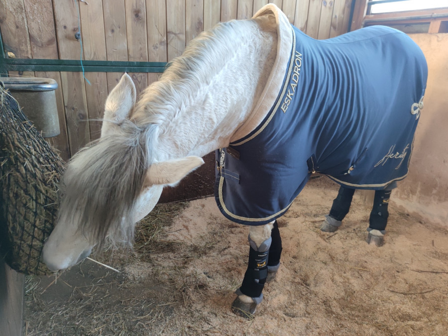 Oui le Bordeau lui va bien. C’était celui de ma grise (et l’ancien de mon premier cheval, l’andalou gris, donc vintage le truc). Mais ma gamine l’a attribué à la ponette. Du coup j’ai ressorti le marine à Irka pour sa fille… je commence gentiment à faire le tour et à réatribuer certaines de ses affaires…