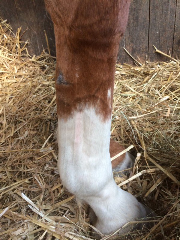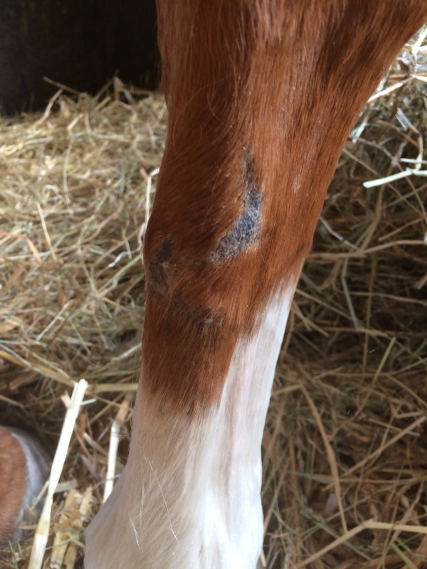 valy29 la cicatrice était déjà là quand je l'ai acheté. L'ancien proprio a donné plusieurs versions de l'accident, à différentes personnes. Apparemment il se serait pris dans une clôture. Je sais même pas si un véto a soigné ça...j'ai une photo où on le voit monté, avec un pansement de rivanol au niveau de la plaie.