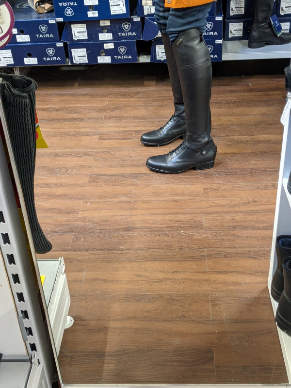 150 au lieu de 330...je les ai laissées au magasin j'attends ma prime de Noël, et je vais les réessayer avec un pantalon normal. J'espère qu'elles seront encore là. Vu ma hauteur de tige il y a peu de clients déjà (il y a 2 paires, à voir selon le pantalon. Une avec 49/36, une paire avec 50/38).