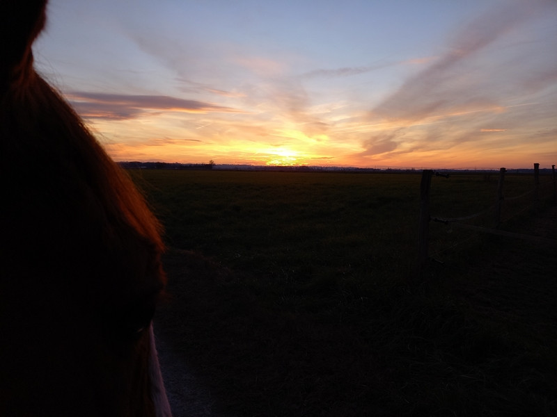 Et ensuite retour au pré, sous un magnifique coucher de soleil