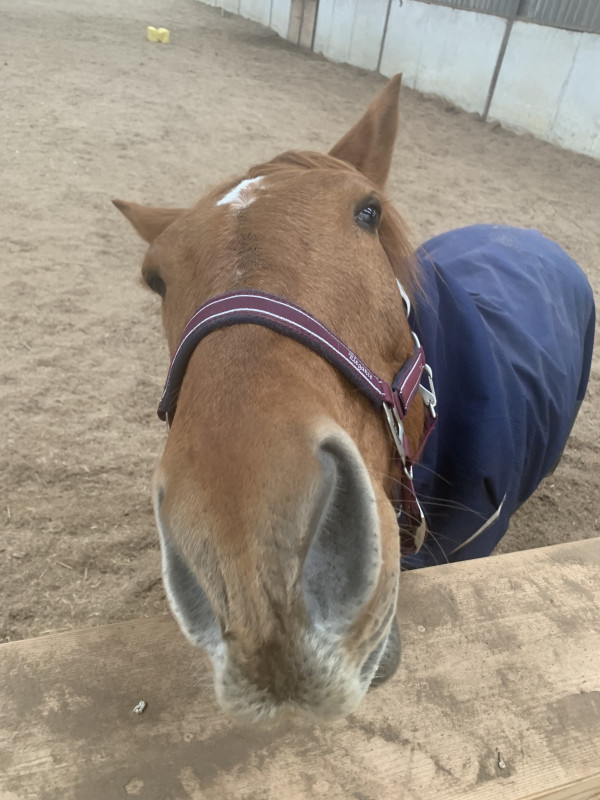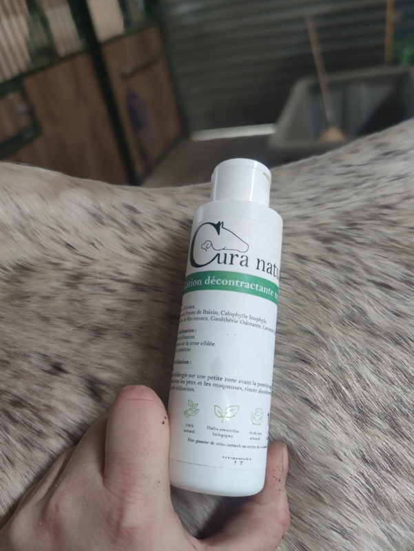 - la lotion décontraction musculaire sur l'encolure et le dos après la séance : alors là sur l'encolure, direct il a machouillé et baillé