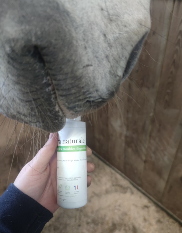 - la lotion troubles digestifs au passage de sangle avant de monter : bon il a eu l'air d'apprécier, à voir par la suite ^^