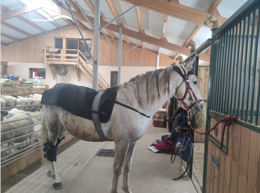 Et sinon pour le moment je semble être sauvée avec un amortisseur à trou en feutre. Je fais encore des ajustements, car hier en partant au trot ma selle a reculé un peu trop...