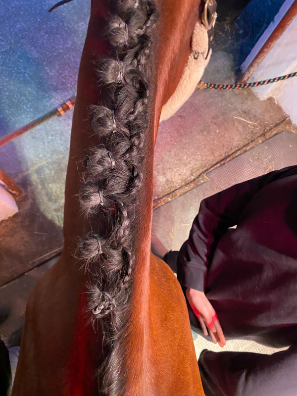 Bon je peux pas t’aider pour le Hunter, mais je partirai du principe que le cheval est « coiffé » avec soin et avec sobriété (il n’y a pas un noeud de couleur différente à chaque pion) donc ça devrait passer
