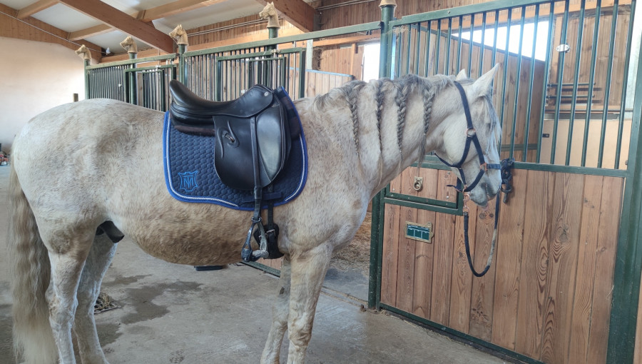 lisdus Amor est difficile à seller, en même temps si ça lui va l'adaptation devrait être faisable de mon côté, puisque on va forcément se trouver sur une selle récente, de qualité.