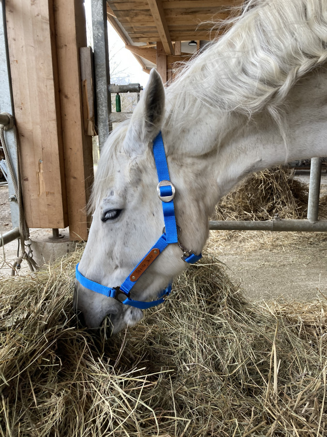 Se tient vraiment comme une poulinière quand il mange son foin ….