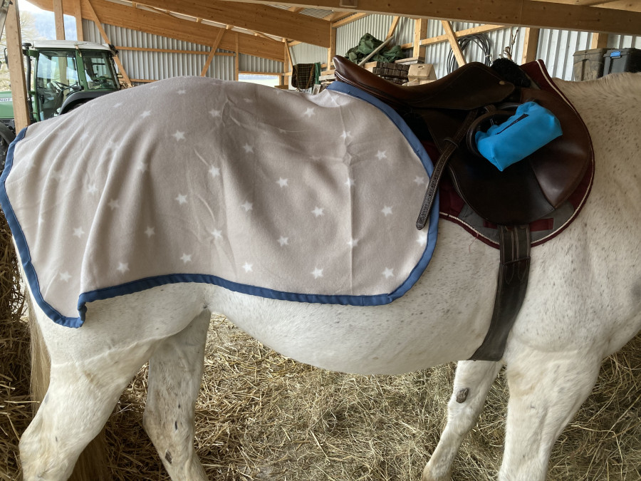 Et voici l’ébauche de mon couvre rein polaire court. Plus qu’à mettre les lanières!
