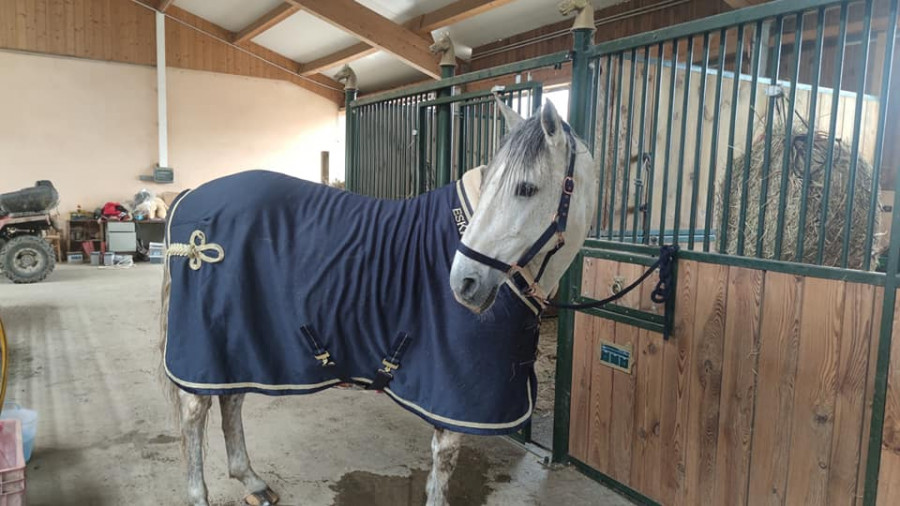 Sinon aujourd'hui temps pourri, j'ai récupéré poney trempé au pré du coup il a eu le droit à son beau pyjama ^^