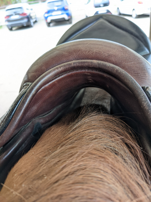 hathi top pour la selle. Devant elle semble poser très correctement. Et oui ce style de selle repose un peu différemment à l’arrière mais là il manque tout de même un peu de rembourrage.