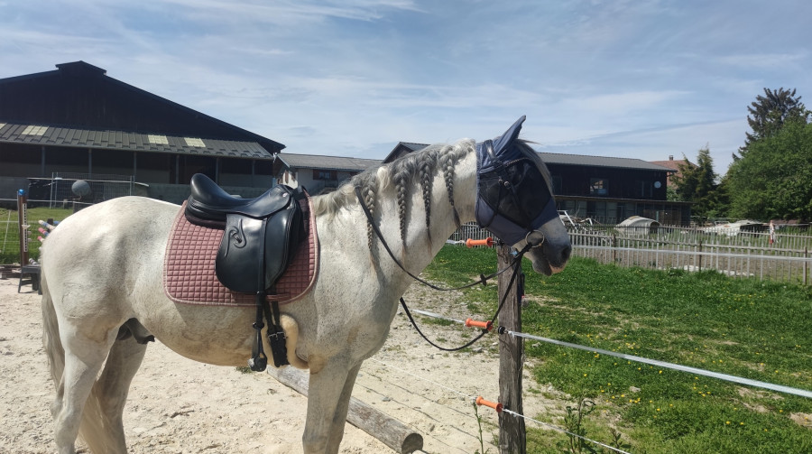 Il me faut aussi un tapis mouton par contre, parce qu'il a perdu de la masse et que le garrot est énorme. La selle va être adaptée en conséquence.