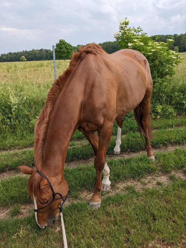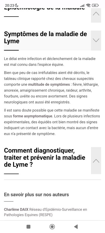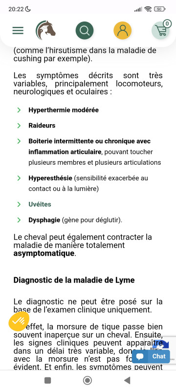 Il est régulièrement mordu par des tiques, et de mon côté j'ai eu Lyme stade 1, donc je trouvais pas ça déconnant, mais Lyme chez le cheval ça provoque d'autres symptômes.