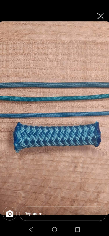 juu_lie ben elle a même pas encore envoyé ma commande, j'ai demandé comment on pouvait faire mais elle a pas l'air décidé à faire quoi que ce soit vu qu'elle a déjà fait le tressage de l'ensemble. Disons qu'elle a du constater à réception de la corde commandée que c'était plus clair que le pétrole commandé de mais elle n'a rien dit