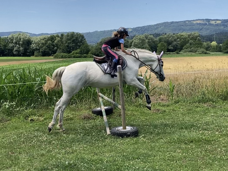 La plus petite rêve de pouvoir Monter la grise. Hier elle semblait disposer, elle l’a monté et j’ai même mis un petit obstacle