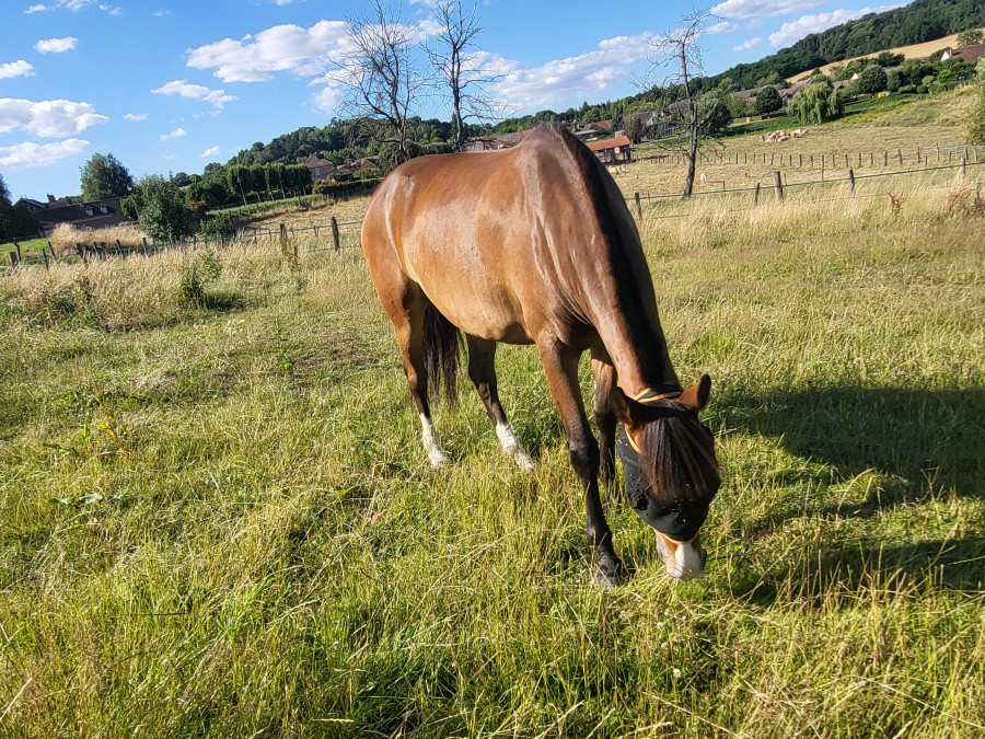 Concernant les couv anti mouche, on va virer celle de pilou, soit j'arrive à trouver un AM efficace (lui devient archi débile à la moindre mouche plate, on n'a pas envie d'un accident et qu'il latte un des travailleurs de l'esat...) soit on va partir sur qqchose de plus récent et aéré car la weatherbeta est trop chaude pour chez nous mais quand on l'a achetée il y a 3 ans, c'était le top sur le marché, et on avait moins de grosses chaleurs (et il allait moins longtemps dehors aussi il faut dire ! Que le matin) . A l'inverse j'ai une copine qui a un dermiteux, elle est archi contente de sa nouvelle horse wear.