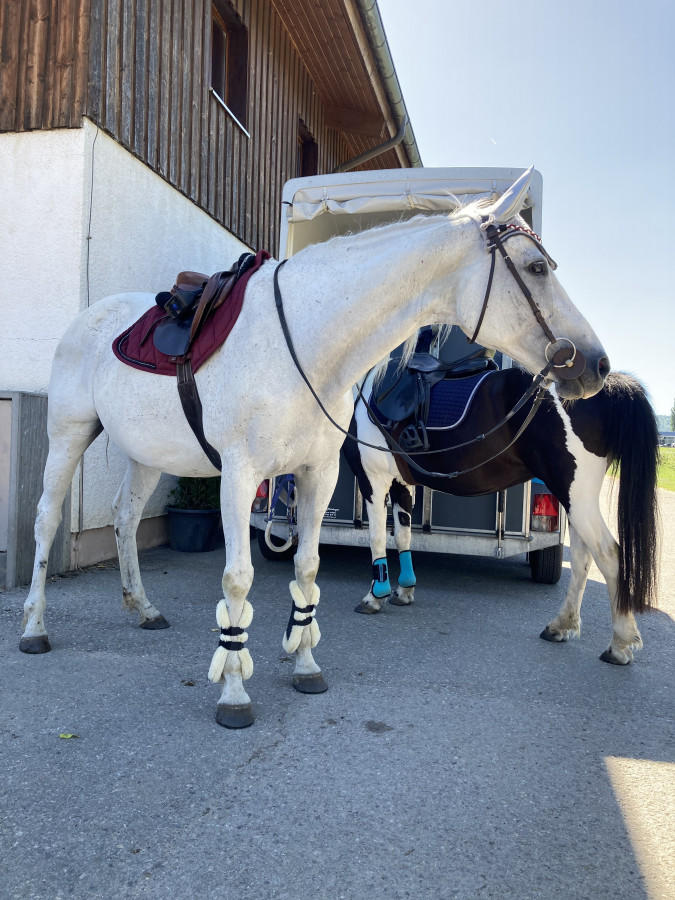 Sinon hier j’ai été avec ma petite prendre un cours de saut au manège où elle prend des cours. J’avais averti que je venais avec mon cheval. Enfaite le moniteur s’attendait à voir Lord … il a été surpris de me voir débarquer avec la grise.