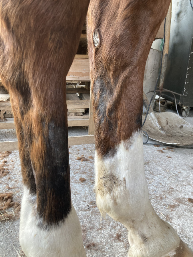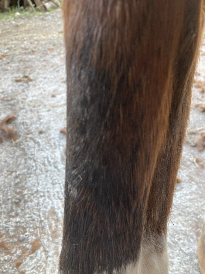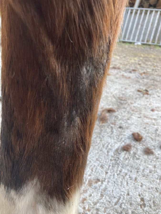 Oui il fait de la photosensibilisation au creux d’un paturon mais c’est la peau rose.