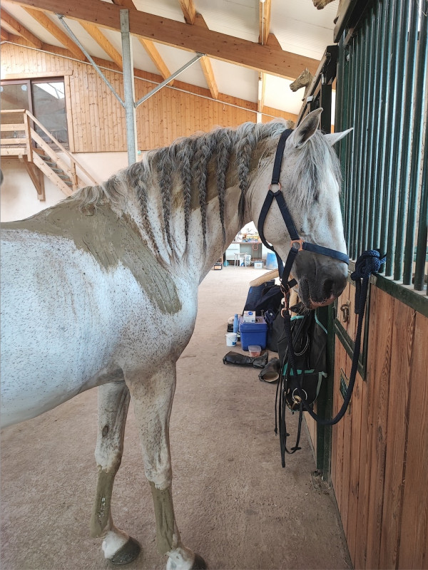 Grosse frayeur cette nuit, 3h30 du mat énorme orage qui a fait trembler mes fenêtres, et là je me dis purée Zaïro est dehors ... Heureusement les chevaux ont été rentrés en urgence à 2h du mat ...