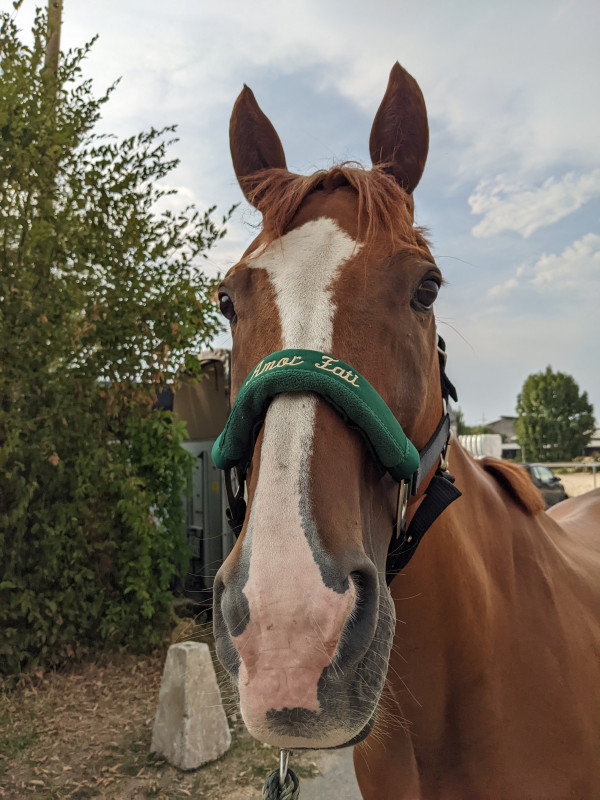 Il a un pad de muserolle et un nouveau licol (acheté chez Padd après). J'ai aussi fait le tour des fournisseurs d'aliments.
