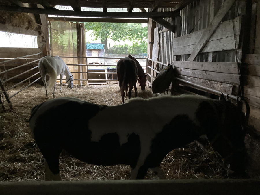 Ils sont retournés dans le bâtiment des vaches. Leur stab n’est pas encore faite. Pour rappel des boxes sont apparu à la place de ma belle stab… et exclu qu’ils aillent en boxe.