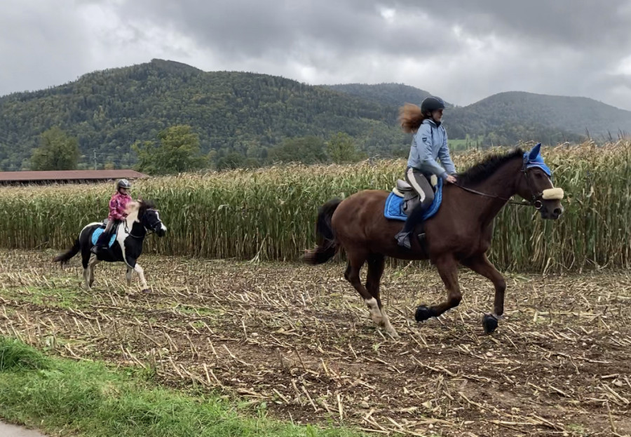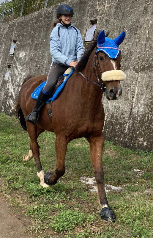 Ici pas de dress touch mais j'ai remis la tenue pour notre première balade autour de la pension dans notre nouvelle région. Ça fait du bien ! Cette semaine je teste la carrière je pense. On en a deux et je ne croise pas grand monde en semaine, je devrais être (très) tranquille.