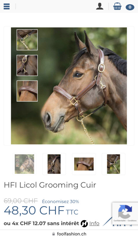 Sur la photo il est sympa ... 50 € un licol tout cuir, je reste perplexe