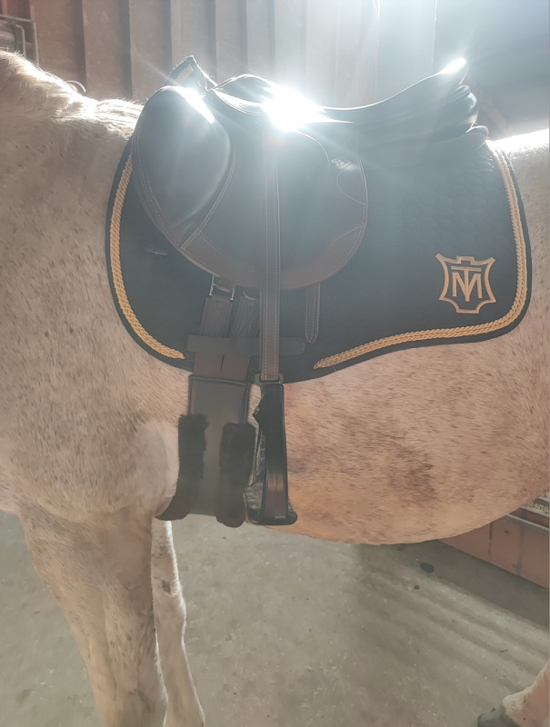 Bon par contre je suis embetée ça fait deux fois que mes mattes dressage bougent et reculer sous ma selle mixte ... jeudi le bleu et aujourd'hui le noir et or