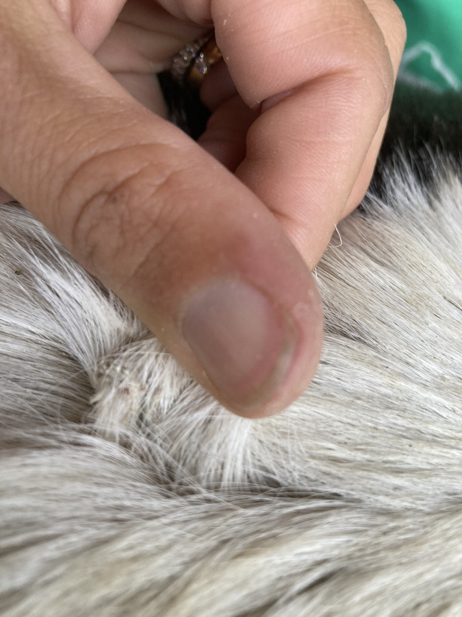 lapsuscalami oui a vu de nez je pense aussi à la dermatophilose. Ça serait vraiment le moins pire se c’est ça.