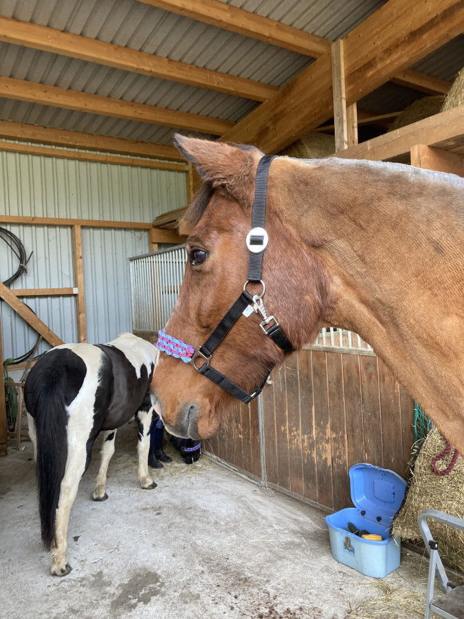 Ici on a fait essayage de licol pour jenna et lord .