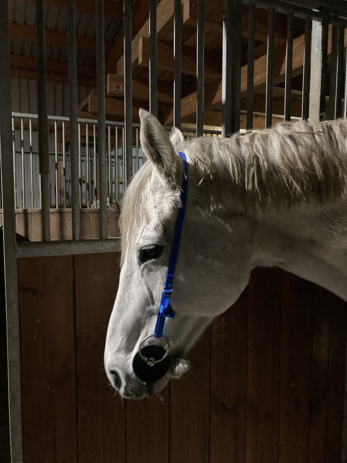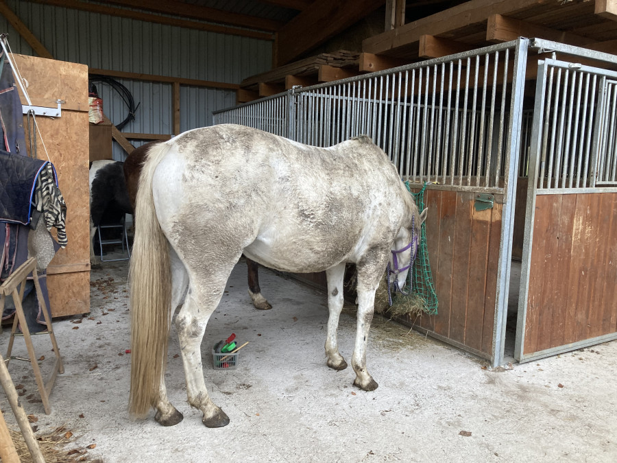 Sinon j’ai vu une belle petite jument de 6ans, portrait de sharka …. OC (père lusitanien et mere PS).