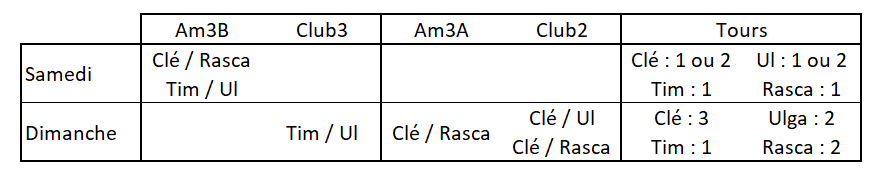 Bon alors le club voisin qui organise le concours de dimanche planifie aussi des épreuves samedi dont amateur3B prepa (=Club3), je pense que je vais engager les loulous pour que la juju et le grand découvrent les lieux et soient moins hysteros dimanche