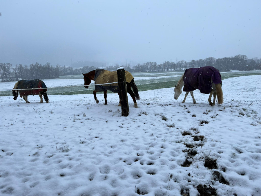 Là il fait froid, plus trop d’herbe (la pâture à été réduite pour en préserver un bout et faire aussi une parure d’hiver aux nouvelles voisines. Le foin à dispo en filet, jenna n’a plus de panier. Mais l’avait jusqu’en début de cette semaine.