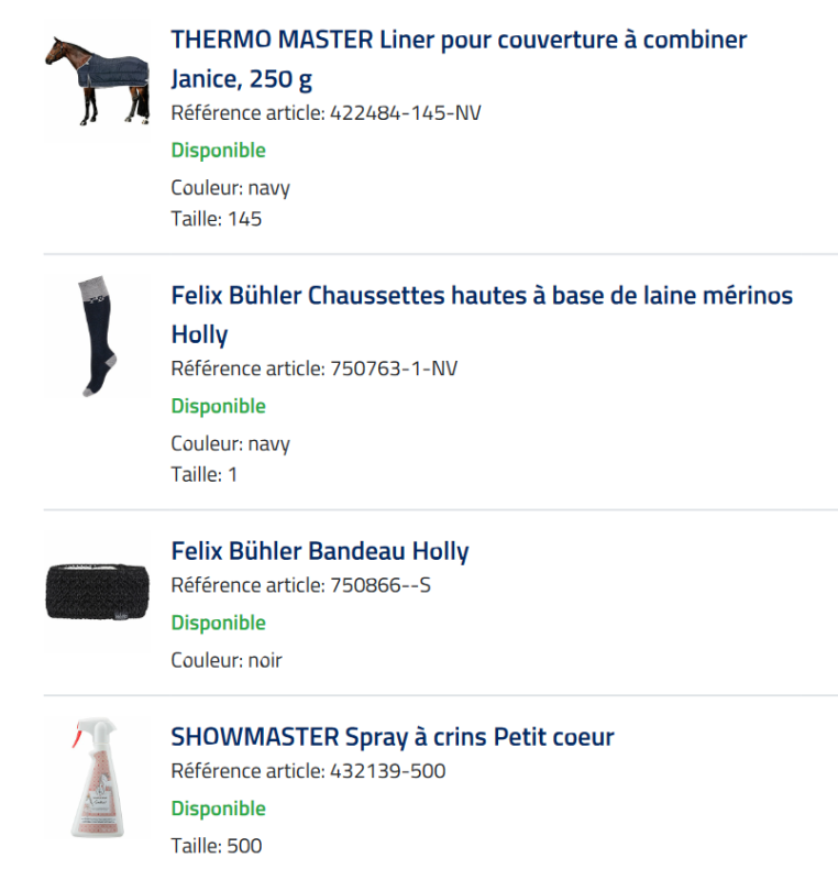 753 (séchage mouton),754 (enlever les poils),777 (enlever les poils),329 (entretien cuir),852 (éponge à bottes),