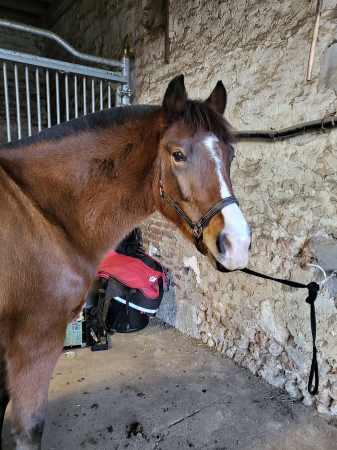 La selle fait minuscule et elle est trop en avant pour le coup je viens de voir ça... Le ventre n aide pas mais l arcade est bonne. Après avec son dos et son passage de sangle les selles semblent toujours en avant mais les épaules sont dégagées ainsi que le garrot