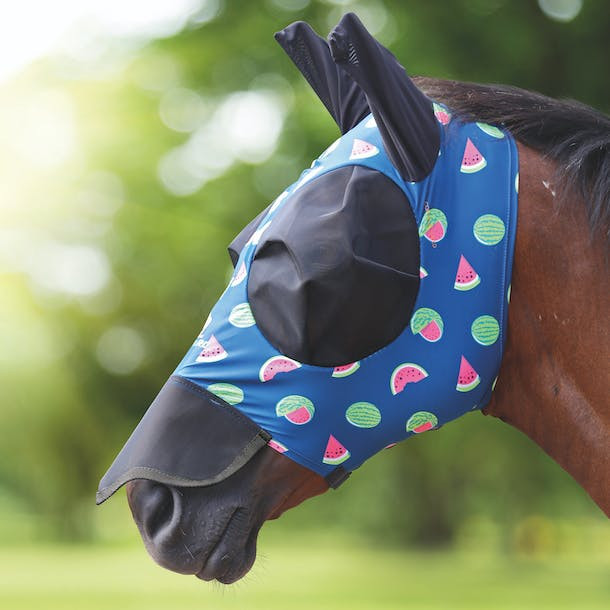 Bon vous allez vous foutre de moi mais j'ai anticipé l'été prochain en achetant des masques abti mouches aux loulou. J'en ai pris en lycra cette fois de la marque shires et ces derniers bloquent 70% des UV pour un prix riquiqui de 16€ chacun sur rideaway. J'ai pris full pour ponette qui a de sacrées ganaches et XL pour mon grand qui a des oreilles un peu longues. Cela évitera aussi à ponette de l'enlever sans arrêt et de m'en perdre un tout neuf à 50 balles de chez equilibrium. Bon j'avoue j'ai aussi craqué sur les motifs trop mignons. Ce sera fraise pour ponette et pastèque pour mon grand (y'a banane aussi hahaha)
