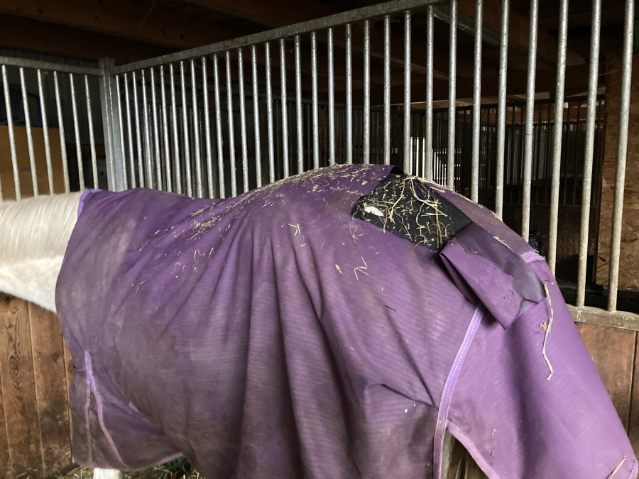 Je suis aller voir un CSO à mes écuries sous une trombe de flotte, forcément trempé et j'ai pensé juste à mes petites fesses à mettre au chaud, mode cozy et ... oublié la sangle qui pourtant est sur ma selle que j'ai mis dans ma chambre pour les deux semaines à venir car temps trop humide dehors.