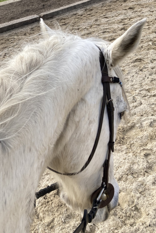 En vrai ça a était mais je me rend compte qu'il va falloir bosser à main droite car elle a un peu de mal à se ployer. Il faut aussi que je montre à ma DP comment remettre d'abord les épaules sur la piste et ensuite redemander le pli sans passer la main au delà du garrot (ce qui est un peu son défaut mais bon elle début en EDL).