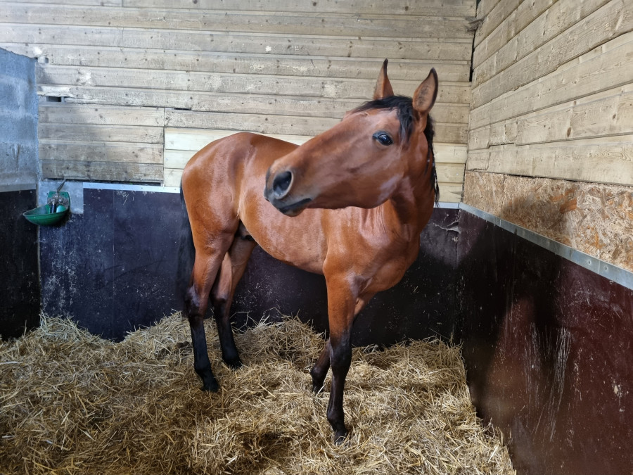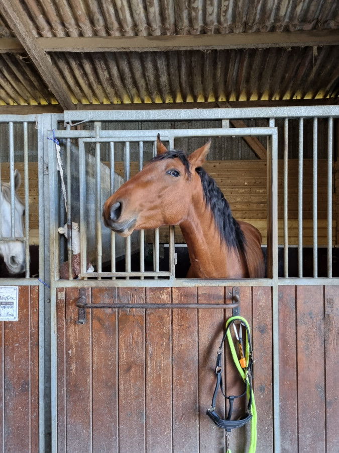 Depuis il va bien, même si trèèèèès tendu, entre le gros voyage de deux jours, entier, et quand à 4 boxes de lui, jument en chaleurs !!