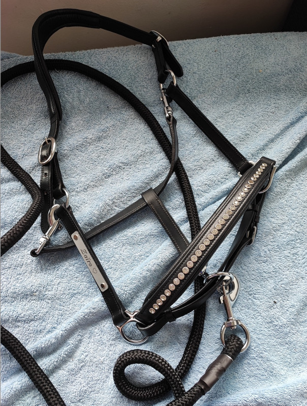 Bon du coup je suis passée à décath j'ai pris un licol premier prix ... taille cob comme ça il est bien ajusté et devrait casser assez facilement ...