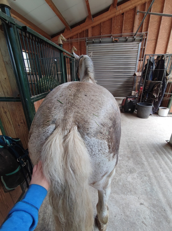 Aujourd'hui séance avec ponette. Je me suis fait violence pour rester positive. Elle m'a embete légèrement avec la selle mais je n'ai pas relevé. Ensuite travail étho top en carrière. Puis en selle et la le montoir elle ne voulait pas. Et je me suis souvenue qu'a l'époque où j avais le "poids ideal" C'était le même cirque. Je me fache avec justesse et j'arrive à me mettre en selle. Detente au trot avec des cercles c etait pas mal du tout puis travail au galop ou nous arrivons à boucler nos premiers cercles. Puis passage de barres au sol avec départ au galop derrière et cercle. C'était bien. Parfois j ai ce sentiment qu'elle a comme du mal mais elle ne boîte pas ; n est pas essouflee. J essaie de me baser sur ça et de rester positive. Je vais continuer les efforts pour être plus légère mais je pense aussi que ponette n a pas encore une condition physique top. Donc on fera de courtes séances qui ne seront pas nocives pour nous deux et on se remettra en forme ensemble. J essaie de garder le sourire mais c est pas simple.