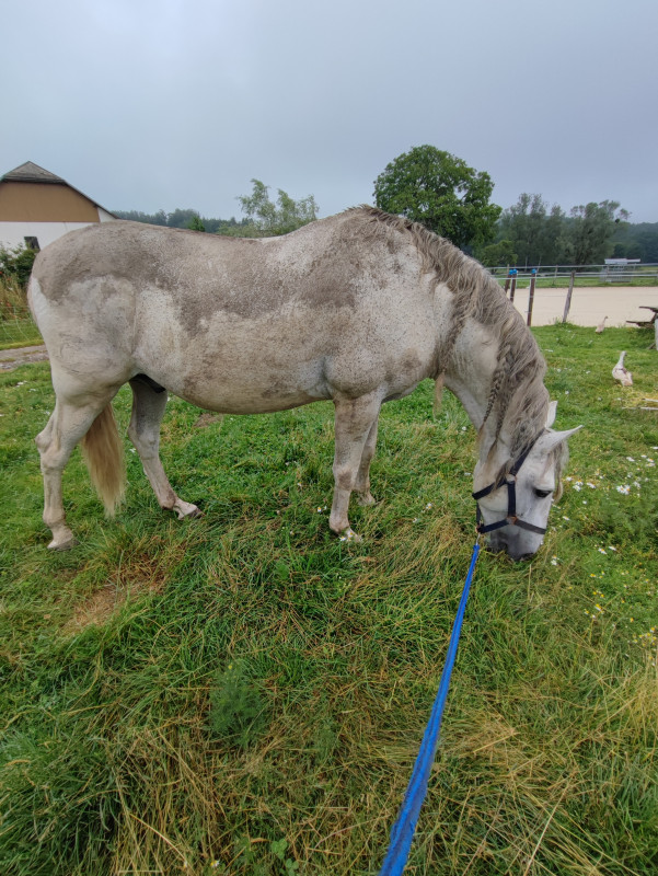 Oui franchement en ce moment c'est le pied ! J'ai vraiment l'impression de construire une vraie relation avec ma jument c'est fou et elle est si volontaire. J'ai l'impression de délaisser un peu mon Papi même si je lui fait ses soins tous les jours etc mais impossible de le sortir du pre avec ses pieds qui cassent c'est un enfer et puis la forêt est barrée par un arbre mort. Des que c'est dégâts j'essaierai de l'emmener. Après bon il ne semble pas en souffrir il est content d'avoir ses compléments etc mais faut vraiment que je prenne le temps de lui faire des papouilles et tout car il le mérite mon doudou mais je suis tellement HS moralement ces derniers temps que bon...