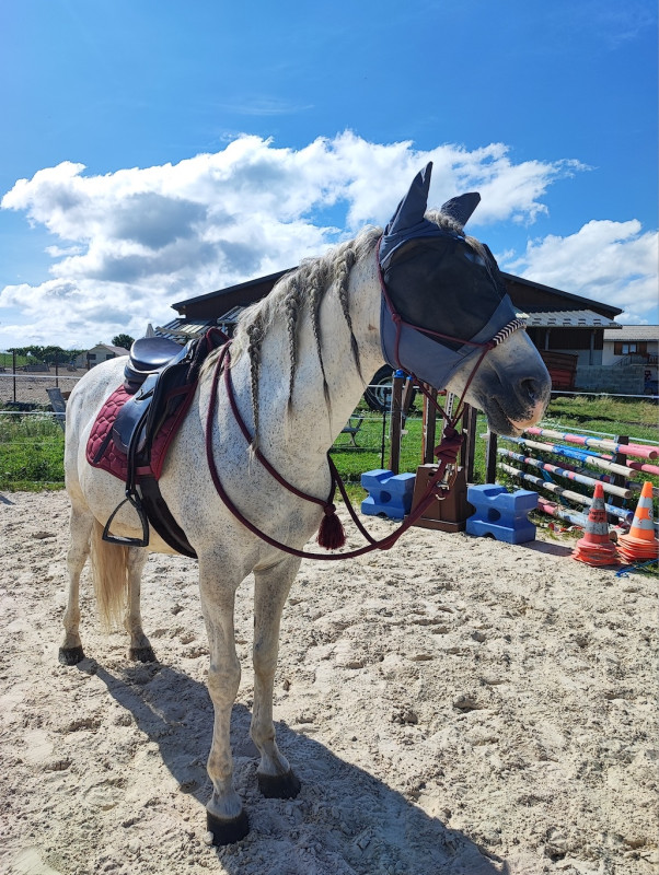 Zaïro a cassé mon licol en tirant au renard ... A l'attache dehors y'a de l'eau qui est arrivée car ils étaient en train de passer le Karcher dans les écuries et il a eu peur...