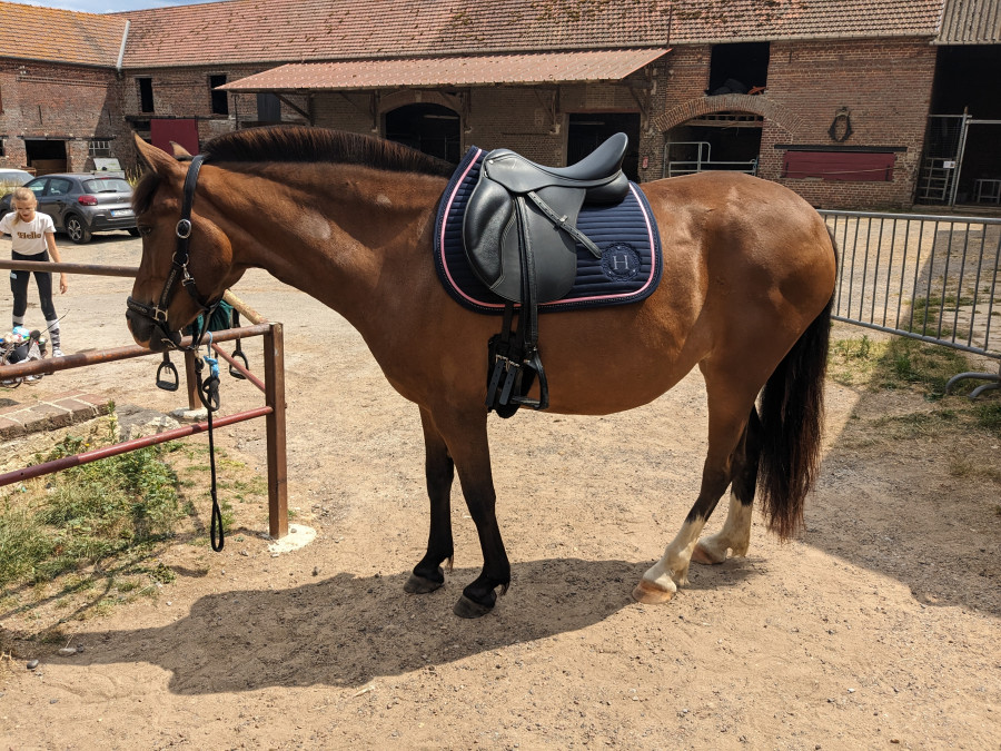 Et je me demande si ponette n'a pas mal au dos .... Elle a tendance a tirer sur les rênes et a baisser la tête au ras du sol par moment comme pour s'étirer... Elle le fait surtout quand on a part en balade et dans les moments où comme si "elle n'avait pas envie" ... Du coup le problème de mon poids refait surface ... J'ai quand même perdu un peu mais je sais pas je culpabilise encore de monter dessus ... Après je n'ai presque plus de problème au montoir. J'y arrive au 2eme coup seulement. Elle ne semble pas esquiver le sanglage comme elle le faisait et ces derniers temps elle était très allante et prompte à réagir a n'importe quel de mes demandes sans avoir l'impression de forcer ou quoi. Après peut être ses chaleurs en ce moment qui sont quasi invisibles qui lui tire sur les lombaires ... Bref la petite roue tourne une fois de plus dans ma tête' une pause nous fera du bien je pense