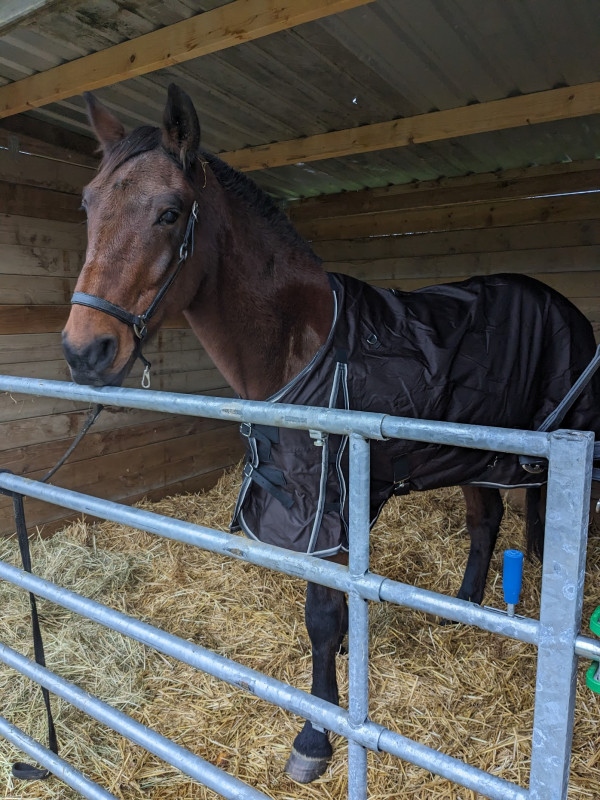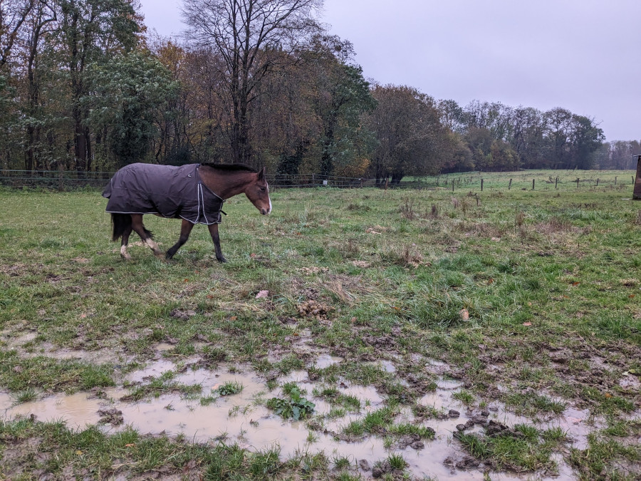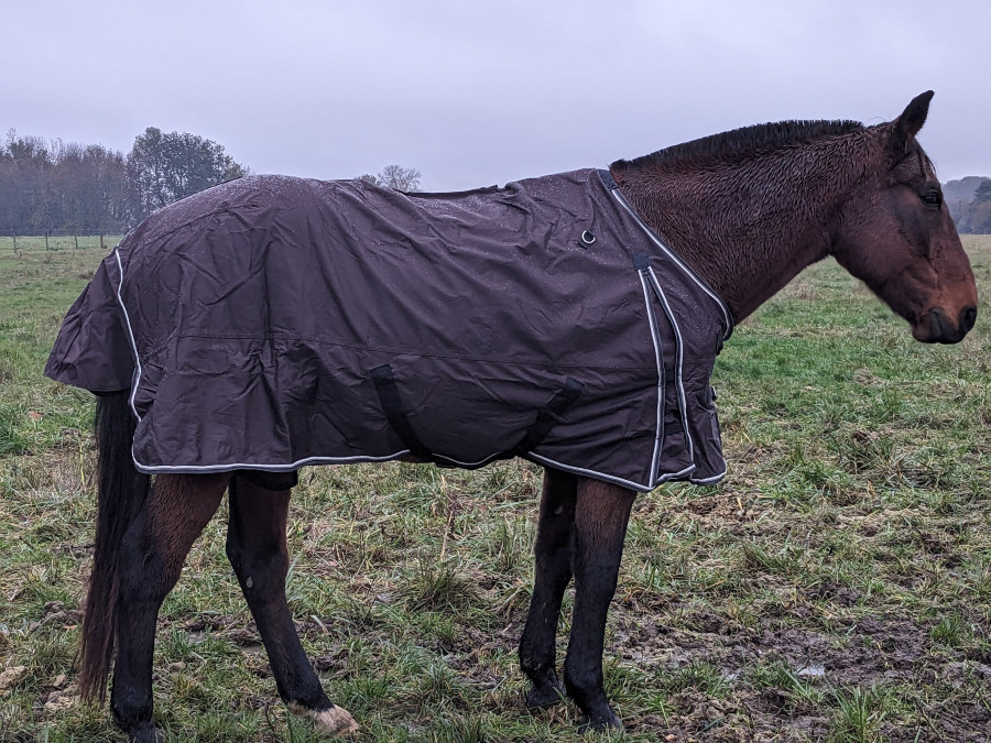 Bon, merci à tous pour vos retours mais ce midi mauvaise surprise, les tyrex laissent passer l'eau aux épaules une cata. J'ai rentré les chevaux au manège le temps de traiter une urgence familiale qui a fait que j'ai du décaler mon après-midi de congés. Urgence traitée je suis retournée au pré avec ... des imperméables fouganza sous le coude. Rien de dispo aux alentours, pas le temps d'aller dans un magasin à 45 minutes de route et pas 200e à mettre fois deux.