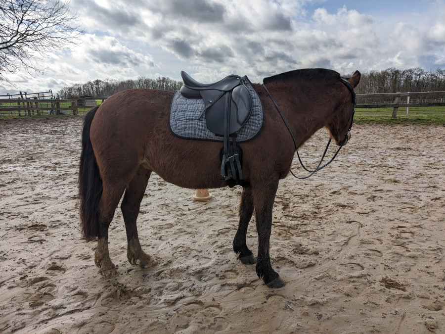 Oui uniq'horse franchement c'est beau mais pas solide quoi .. pour la sangle j'ai hâte bien qu'aujourd'hui j'ai enfin pu tester le nouveau pad anti gliss qui vient en plus de celui que j'avais déjà qui est en dessous du tapis. Celui là va au dessus et est super discret et fin. J'ai aussi repris ma sangle mattes en 80cm cette fois pour voir si le déport était meilleur et un tapis plus adhérent. Et bien MIRACLE ! La selle n'a pas bougé et je n'ai pas sangle comme d' habitude mais plus lâche et c'était top top. Et pourtant on a galope en descente car notre carrière est en pente, j'ai du des arrêts nets car qui dit post tempête dit une ponette un peu flottante et sur l'oeil. Clairement c'était pas une "bonne séance" , cavalière qui a les jambes en essuie glace car flemme de mettre de vraies bottes , une carrière pas du tout pratiquable donc on slalom entre les flaques mais au moins une selle en place et on s'est amusé et c'est le principal !