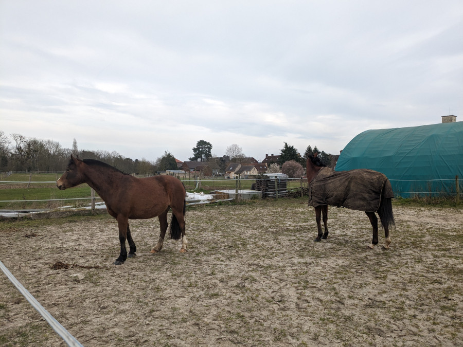 Du côté de ponette ça roule aussi, elle a fait connaissance avec son copain de paddock qui est le cheval d'une amie. Ce sera temporaire, le temps de l'intégrer en pâture avec le troupeau de l'écurie active.