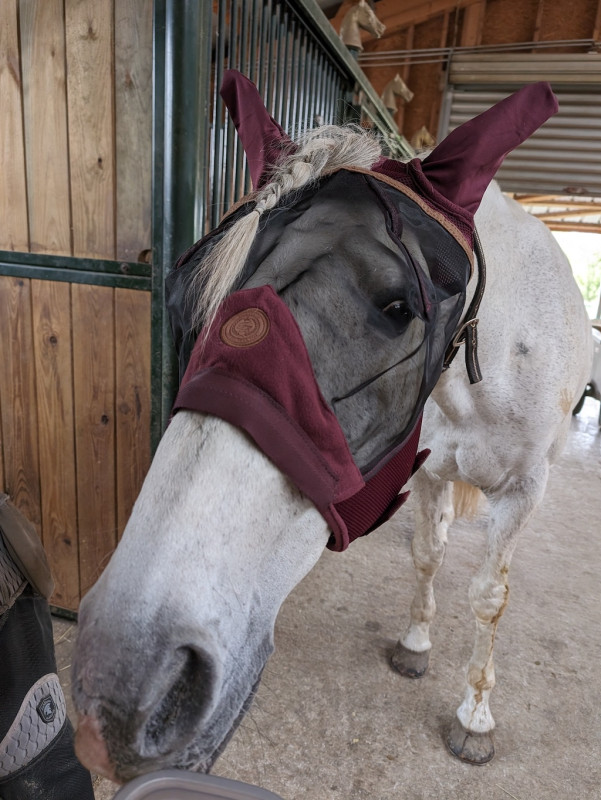 Bon maintenant il va me falloir un 2ème filet. Mais je vais peut-être attendre de voir comment ça se passe pour mes selles afin de choisir la couleur du cuir.