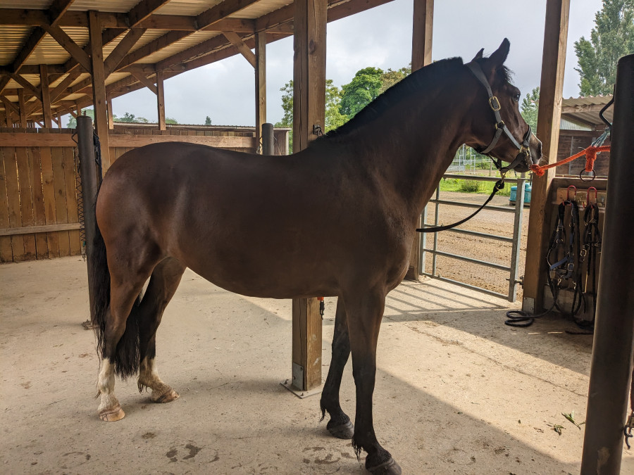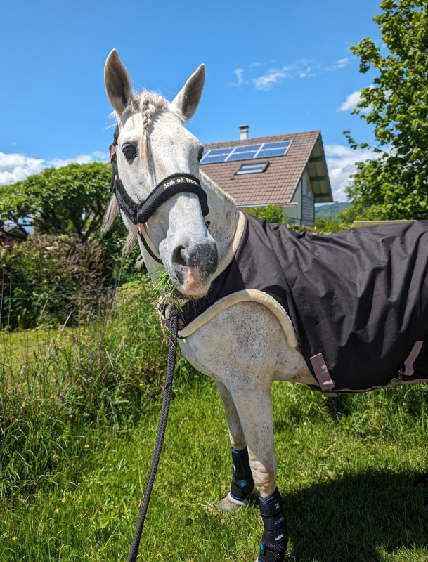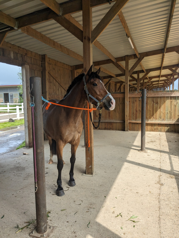 Et hop une petite balade sous la pluie avec une bonne grosse averse avant et de l'orage youpi. Mais ponette exemplaire. On a fait que du pas car tout était trempé / glissant. Et nous sommes sortis en licol ! Une ponette au top a la préparation qui ne bouge pas au sellage. J'ai cru voir des gonfles sur son dos mais non c'était apparemment des piqûres ouf. J'en ai profité pour rectifier ses pieds. Ils sont un peu long mais je sais que l'écurie active lime pas mal les pieds donc je préfère attendre un peu. On a refais aussi le passage de têtière et hop au pré avec les copains. Le mâle a été retiré et ça va beaucoup mieux, elle commence a s'intégrer.