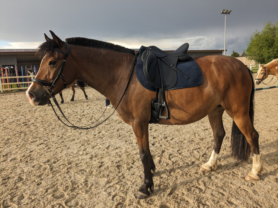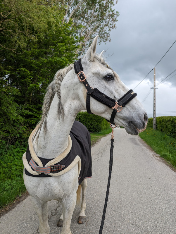 De mon côté j'ai repris un cours de plat hier et reprise sportive. On a bossé le contre galop et le mot d'ordre pour ma ponette c'est que je dois vraiment venir la prendre au contact qu'elle apprenne à ne pas plonger. En soit elle a bien exécuté les exercices je suis contente mais elle me tire fort devant. Je dois me redresser tout en ne figeant pas les bras dur dur ... Sinon va vraiment falloir bosser l'incurvation je me rend compte qu'elle confond ma jambe intérieure avec le départ au galop et qu'elle prend ça aussi pour un accélérateur.